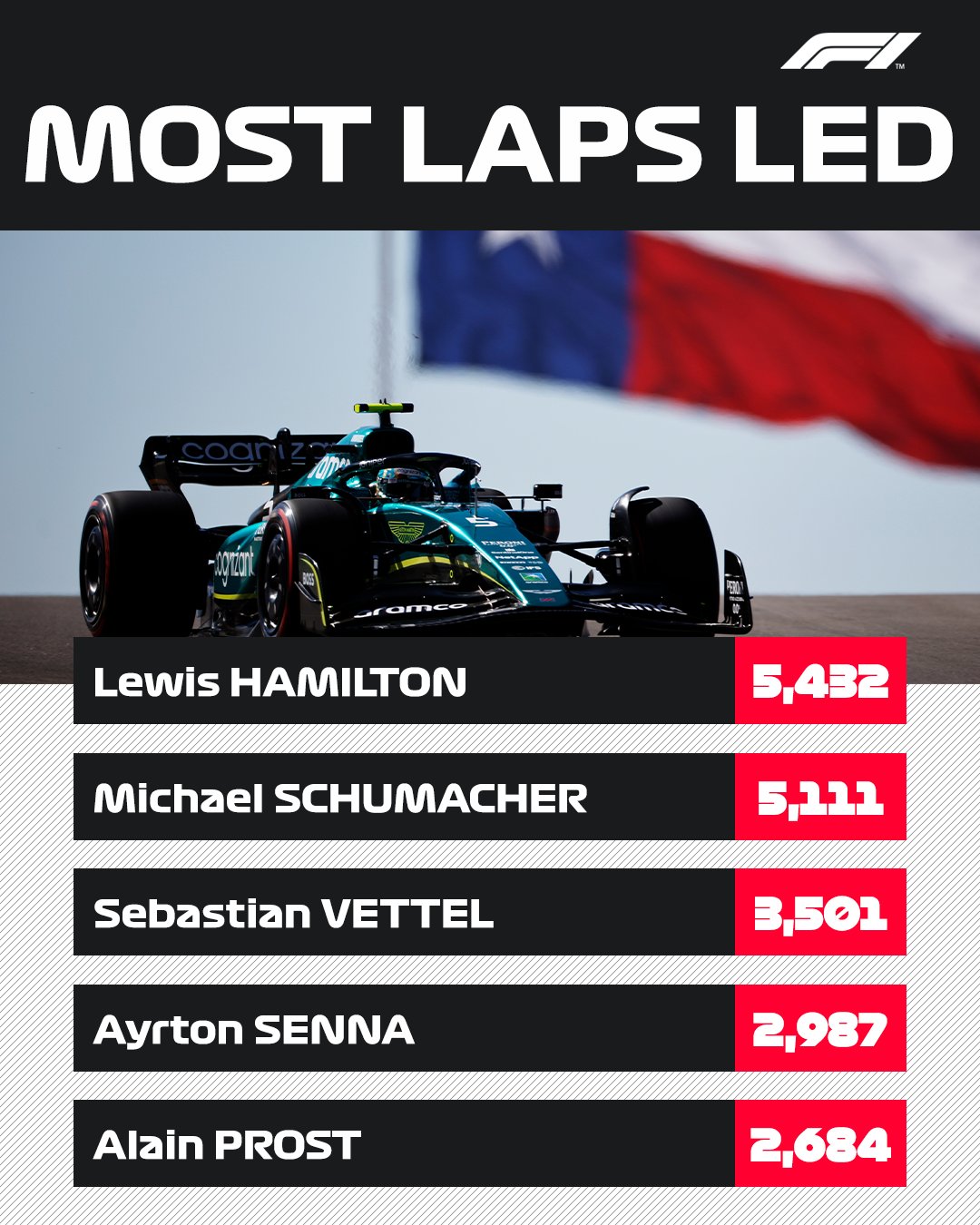 Formula 1 On Twitter Another Milestone For Seb Thanks To Those Two Laps In The Lead In Austin He S Now Surpassed The Incredible Tally Of 3 500 Laps In Charge In His Career